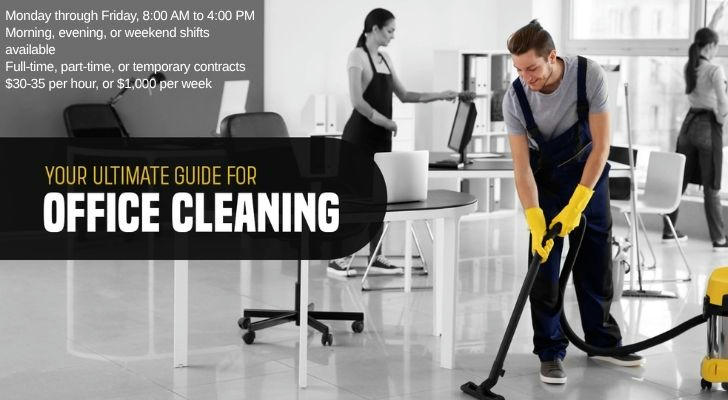 Office cleaners usually work five days a week, with weekends or evenings optional for those wanting additional hours.